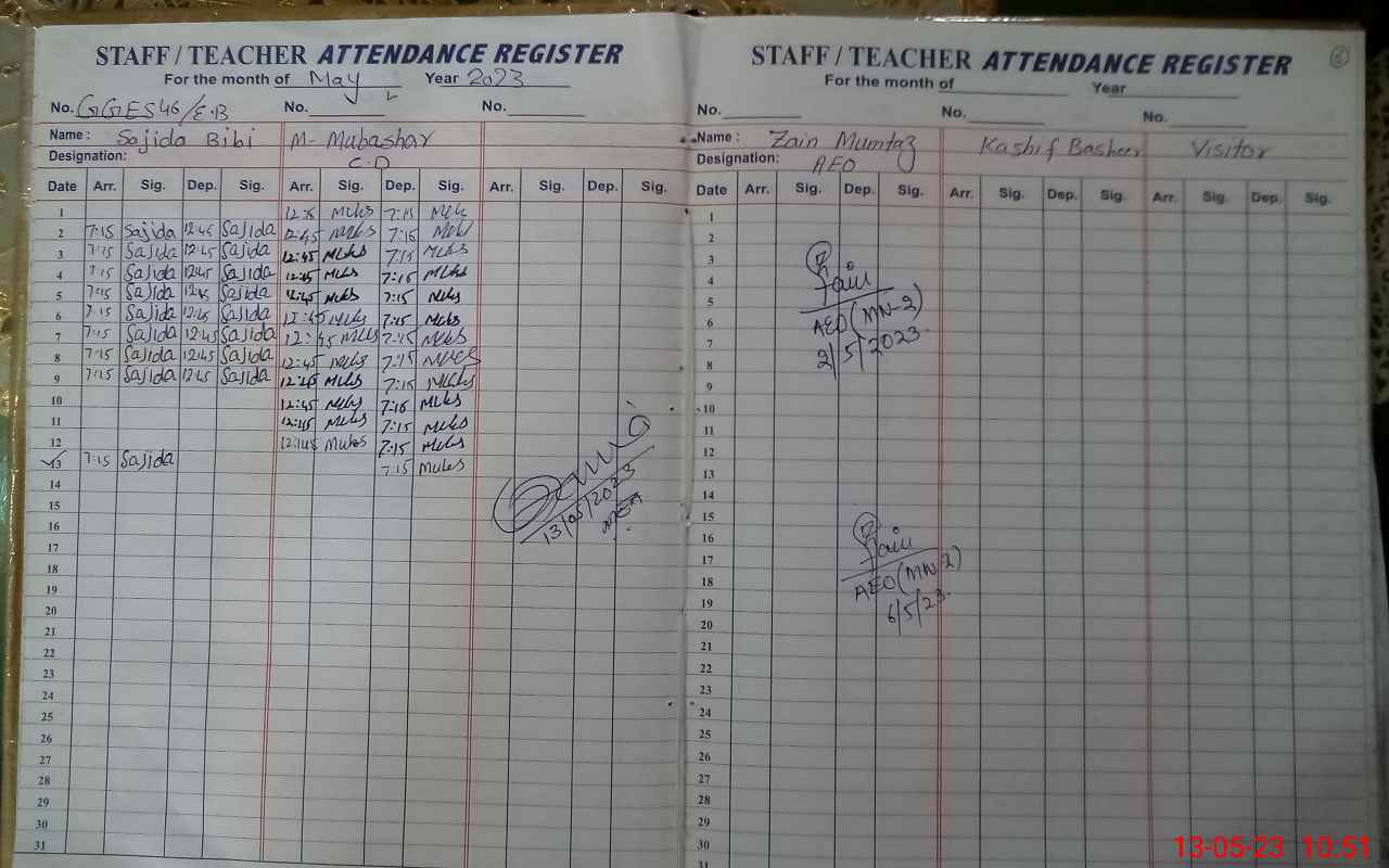 | Attendance Register | Head Teacher | MEA with School | Visit Proof |
