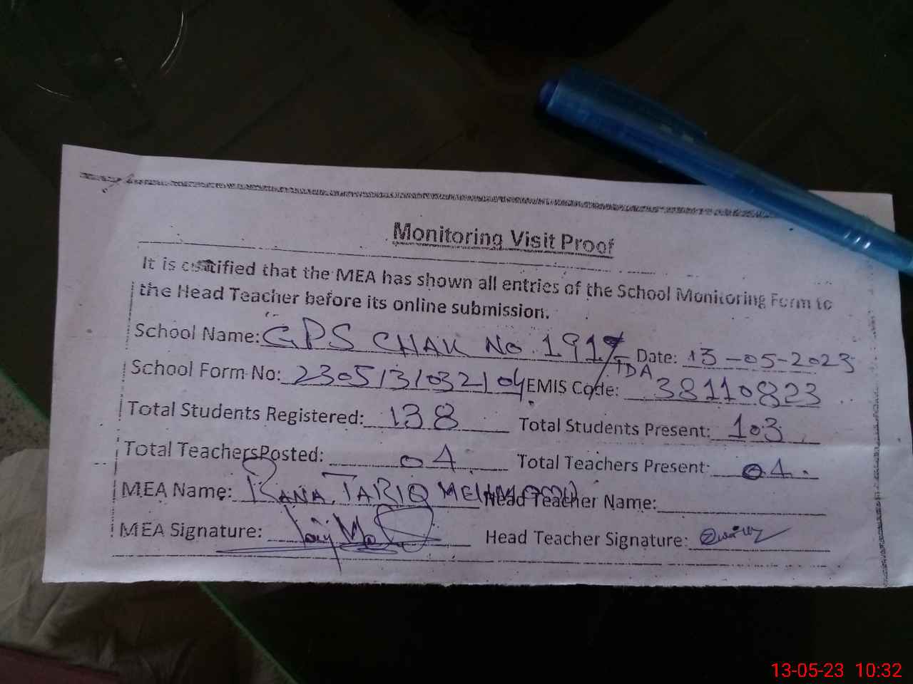 | EMIS Code: 38110823 | Name of School: GPS CHAK NO 191 TDA | |||