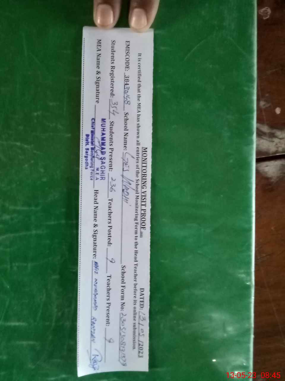 | Name: MU**** FA**** AS**** Designation: (School Headmaster's/Headmistress's) EST I/c Phone/Cell Number: 03**** |