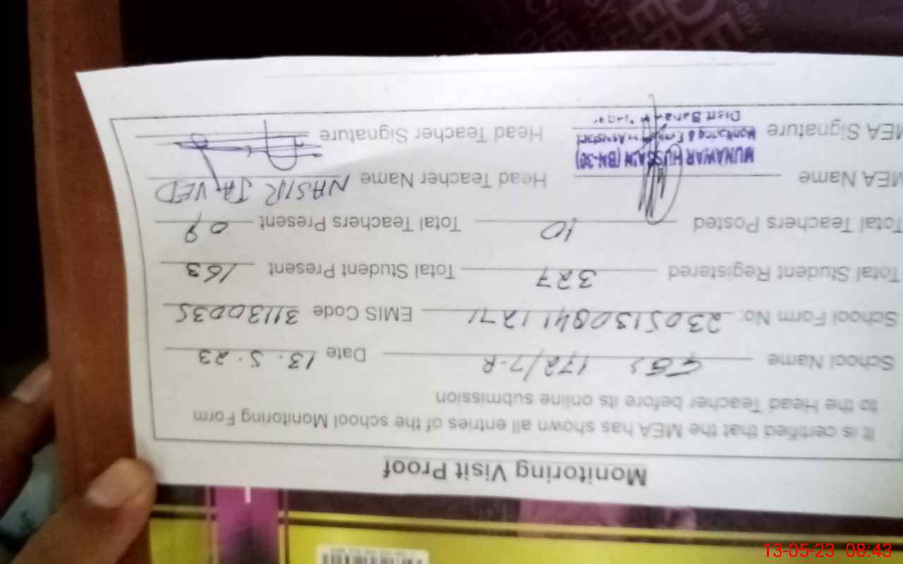 | Certified that this School was Inspected by the Undersigned MEA/DMO Today and the Information Stated Above is as Per Record. | |||||