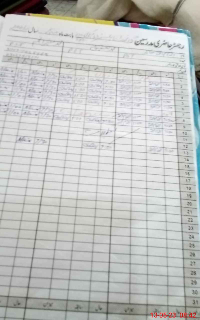 | CNIC | Full Name | Designation | R/C | Absence During Last Calender Month |