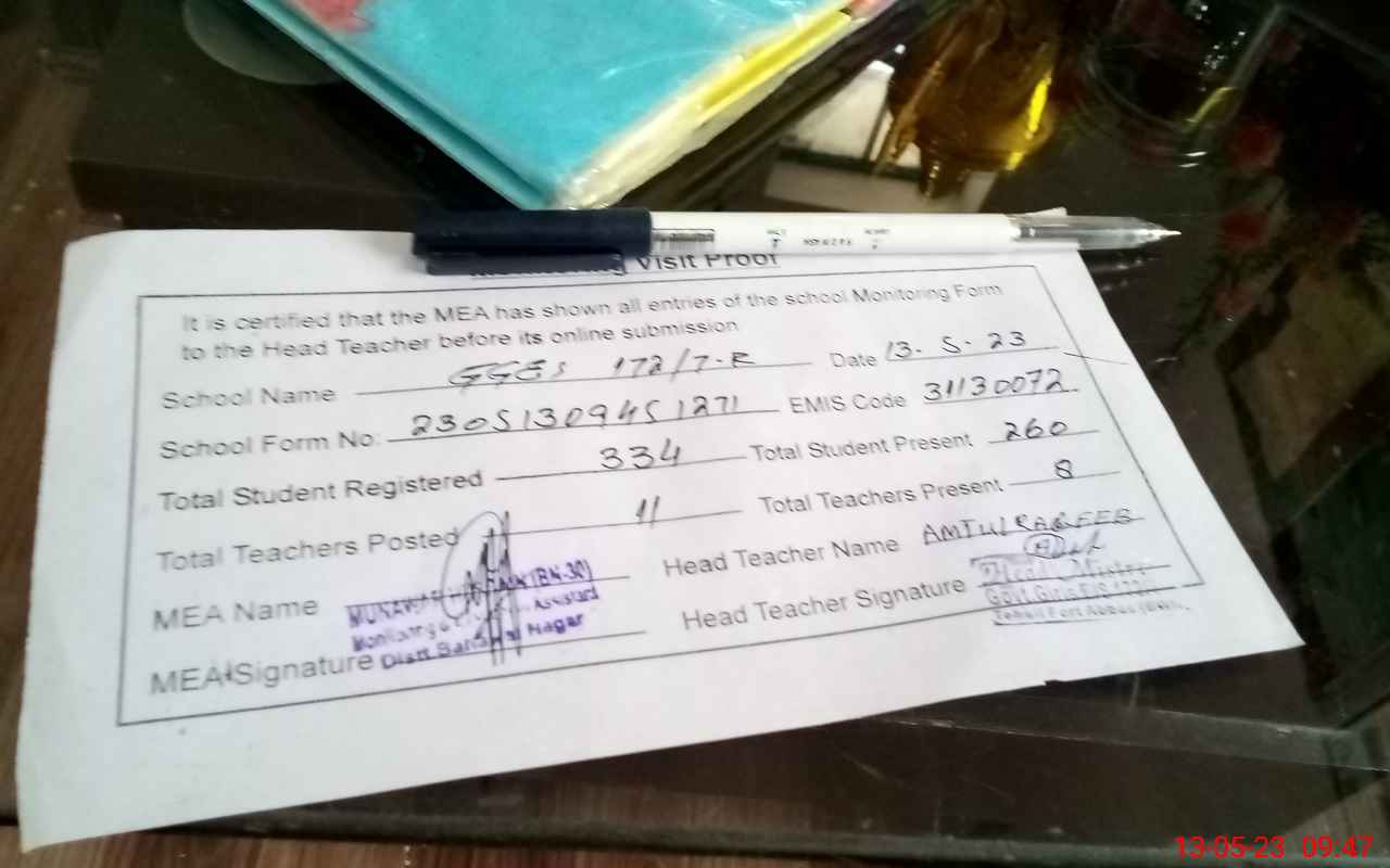 | EMIS Code: 31130072 | Name of School: GGES CHAK NO. 172/7-R | |||