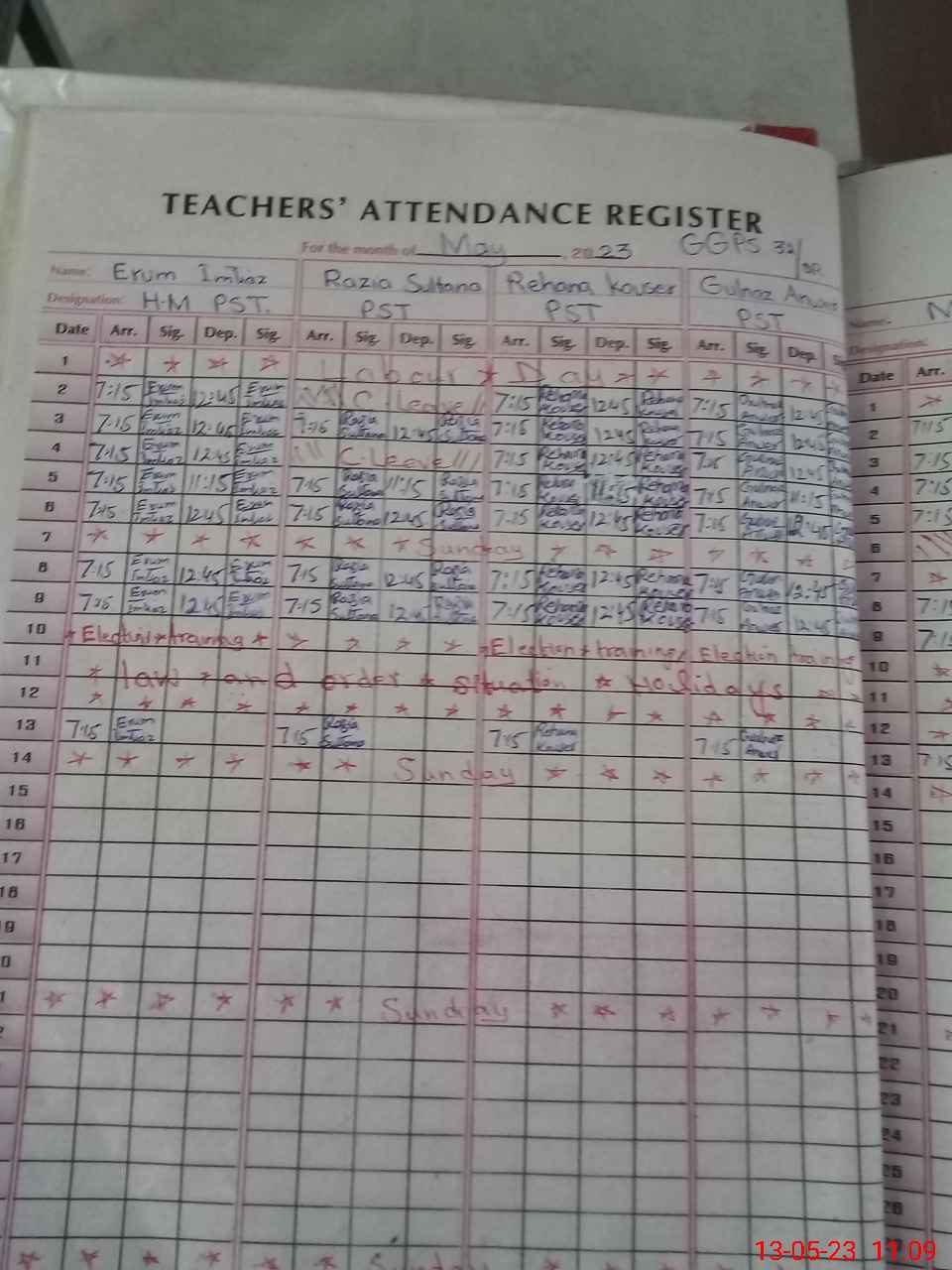 | Name: ER**** IM**** Designation: (School Headmaster's/Headmistress's) ESE Phone/Cell Number: 03**** |