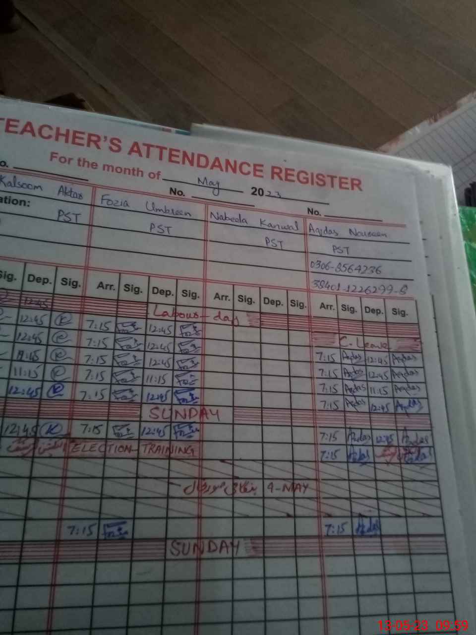 | CNIC | Full Name | Designation | R/C | Absence During Last Calender Month |