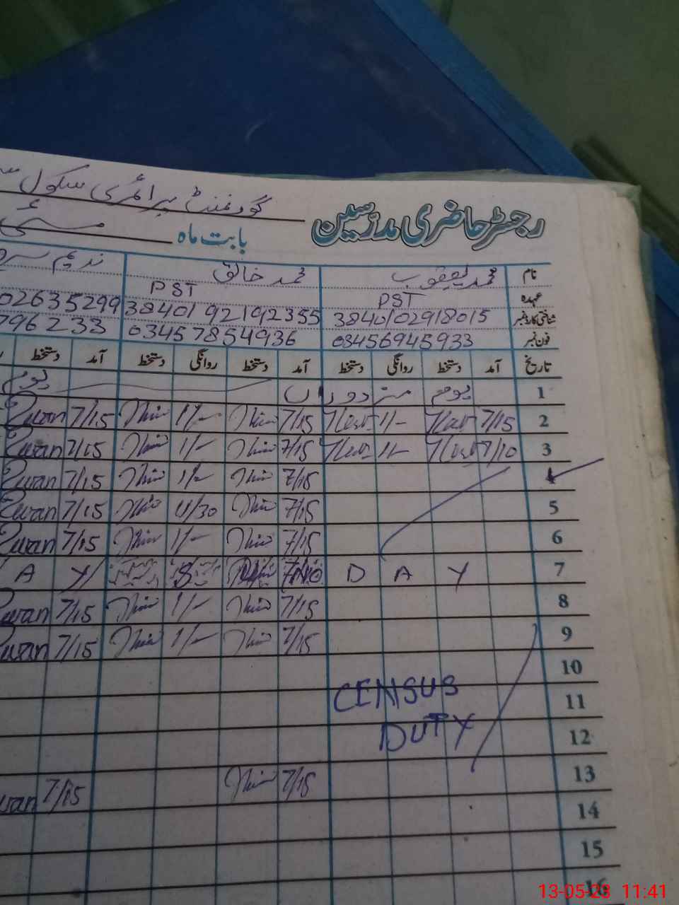 | Name: MU**** YA**** Designation: (School Headmaster's/Headmistress's) PST Phone/Cell Number: 03**** |