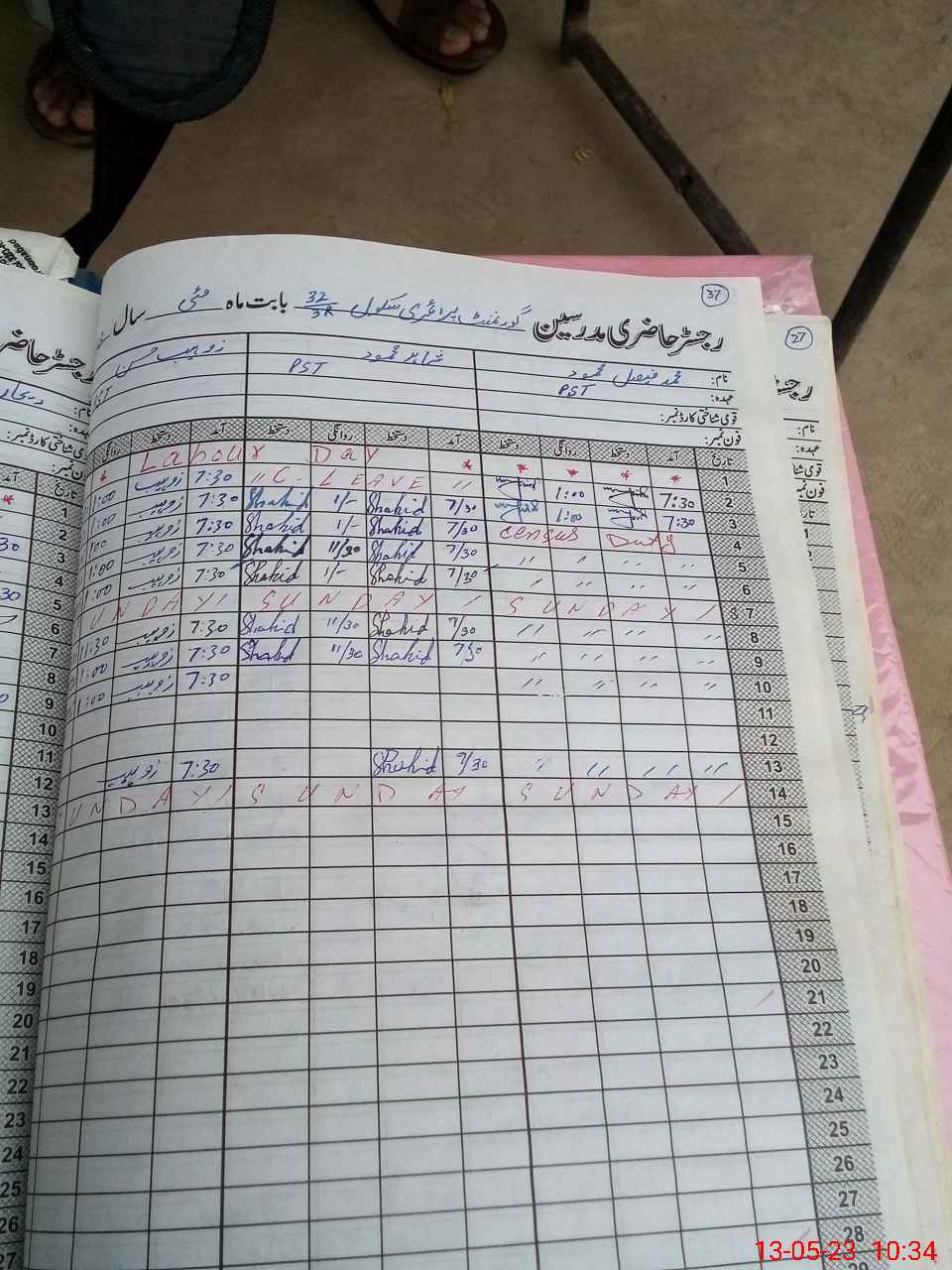 | CNIC | Full Name | Designation | R/C | Absence During Last Calender Month |