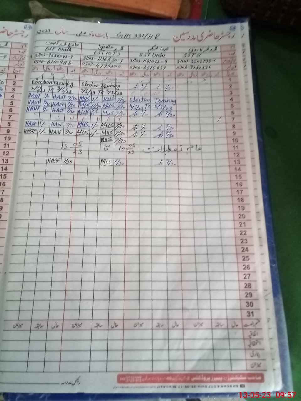 | Name: MMU**** Designation: (School Headmaster's/Headmistress's) S.S.T.(SC) Phone/Cell Number: 03**** |