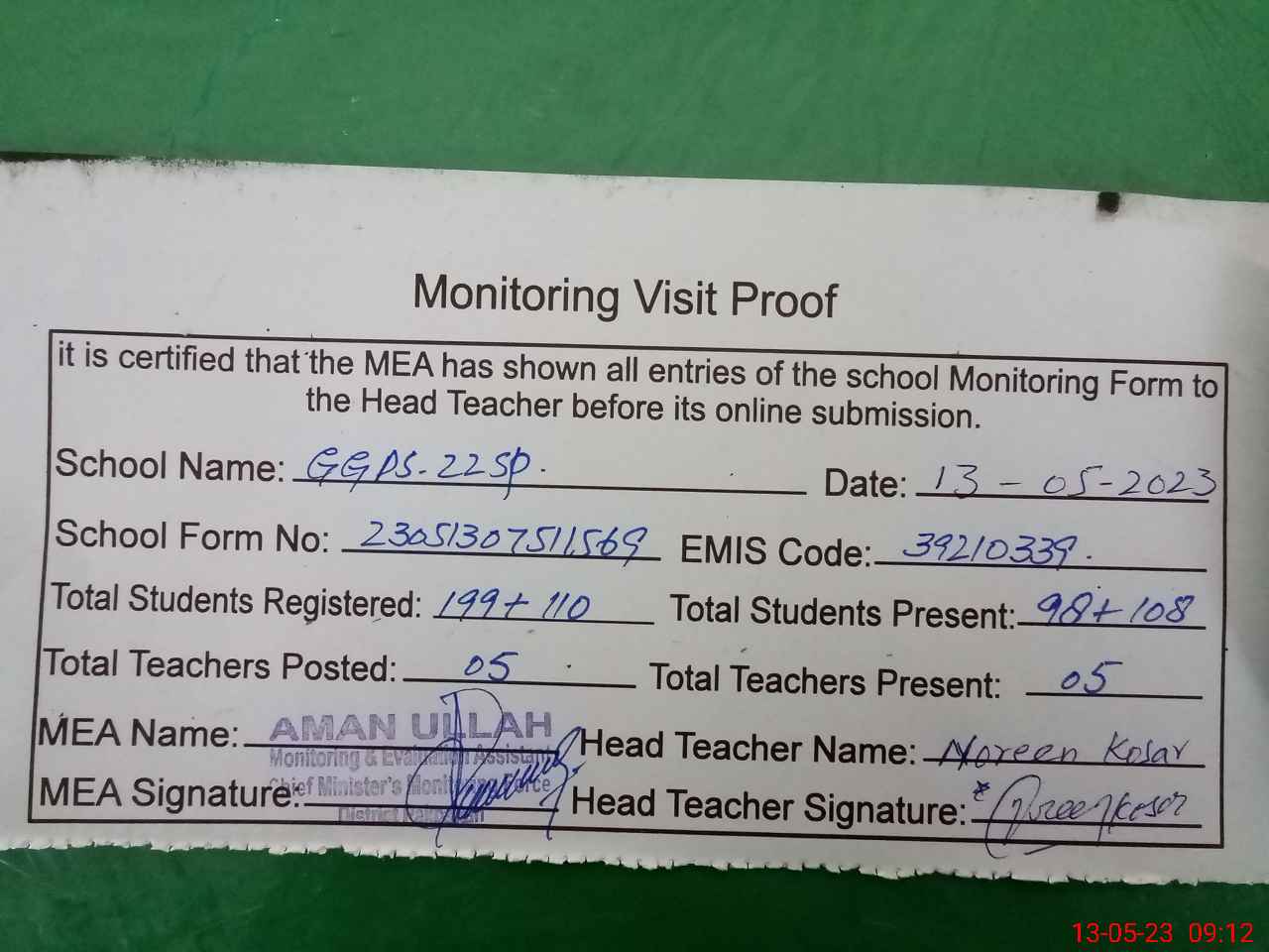 | EMIS Code: 39210339 | Name of School: GGPS 22 SP | |||