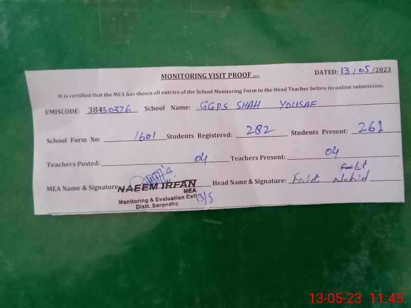 | EMIS Code: 38430376 | Name of School: GGPS SHAH YOUSAF | |||