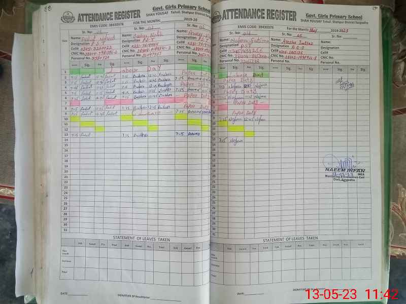 | CNIC | Full Name | Designation | R/C | Absence During Last Calender Month |