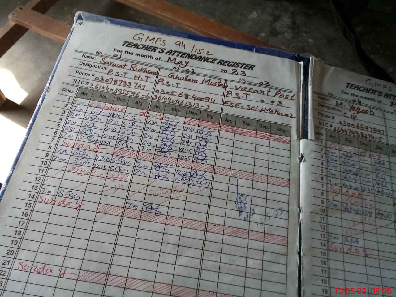 | Name: SA**** RU**** Designation: (School Headmaster's/Headmistress's) PST Phone/Cell Number: 03**** |