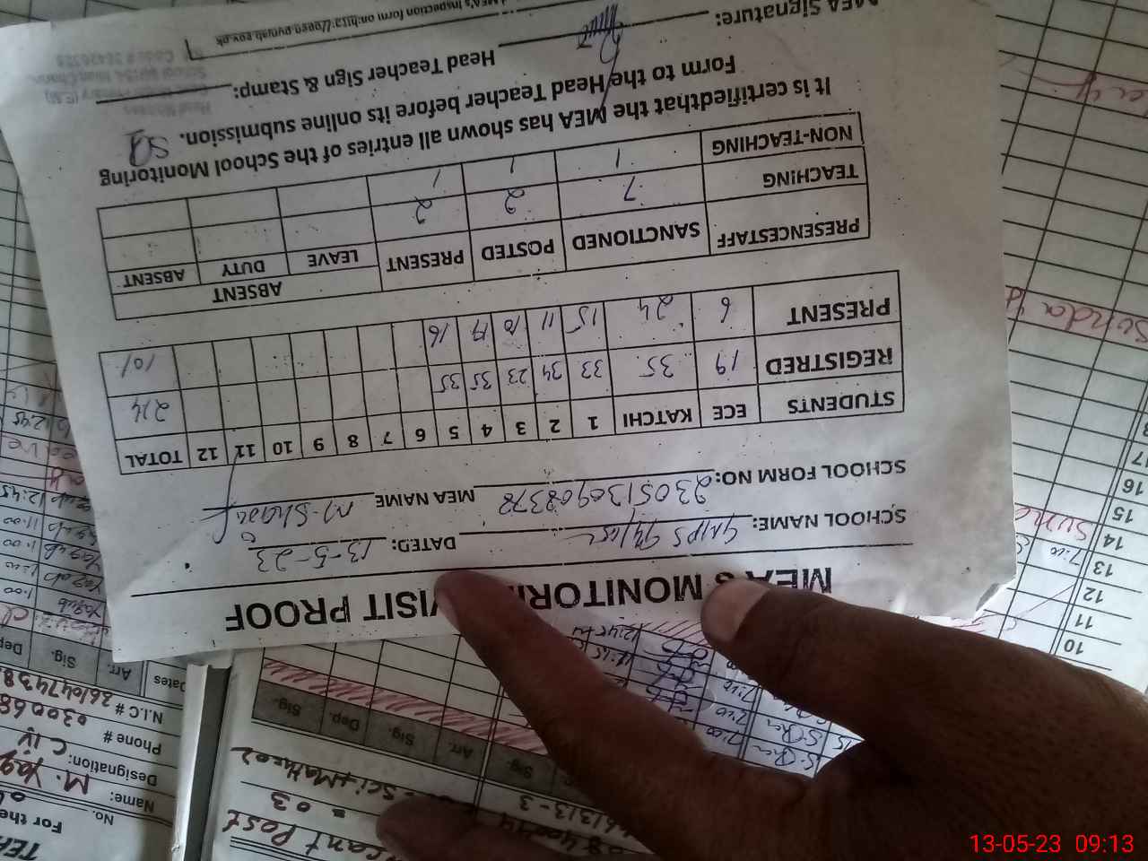 | Attendance Register | Head Teacher | MEA with School | Visit Proof |