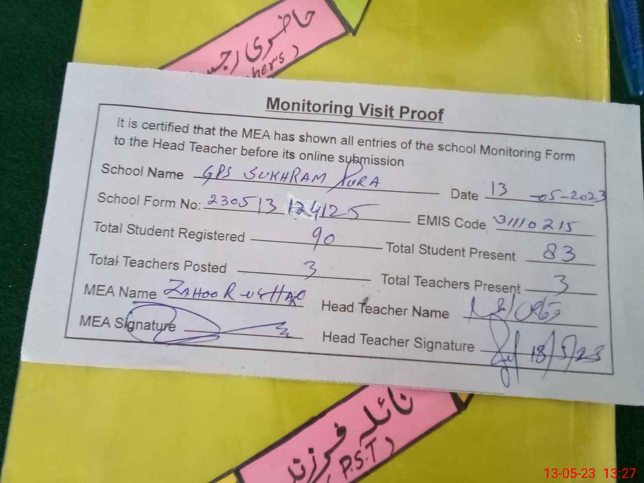 | EMIS Code: 31110215 | Name of School: GPS SUKHRAM PURA | |||