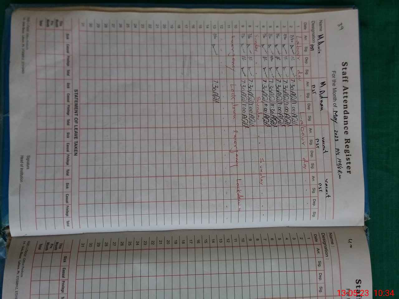 | Leave | Duty | Absent | Maternity | Medical | Ex- Pak |