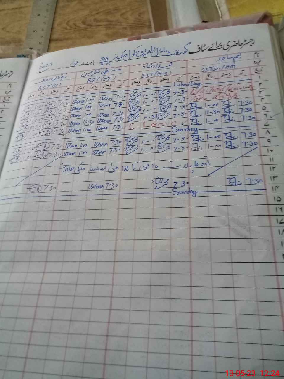 | Leave | Duty | Absent | Maternity | Medical | Ex- Pak |