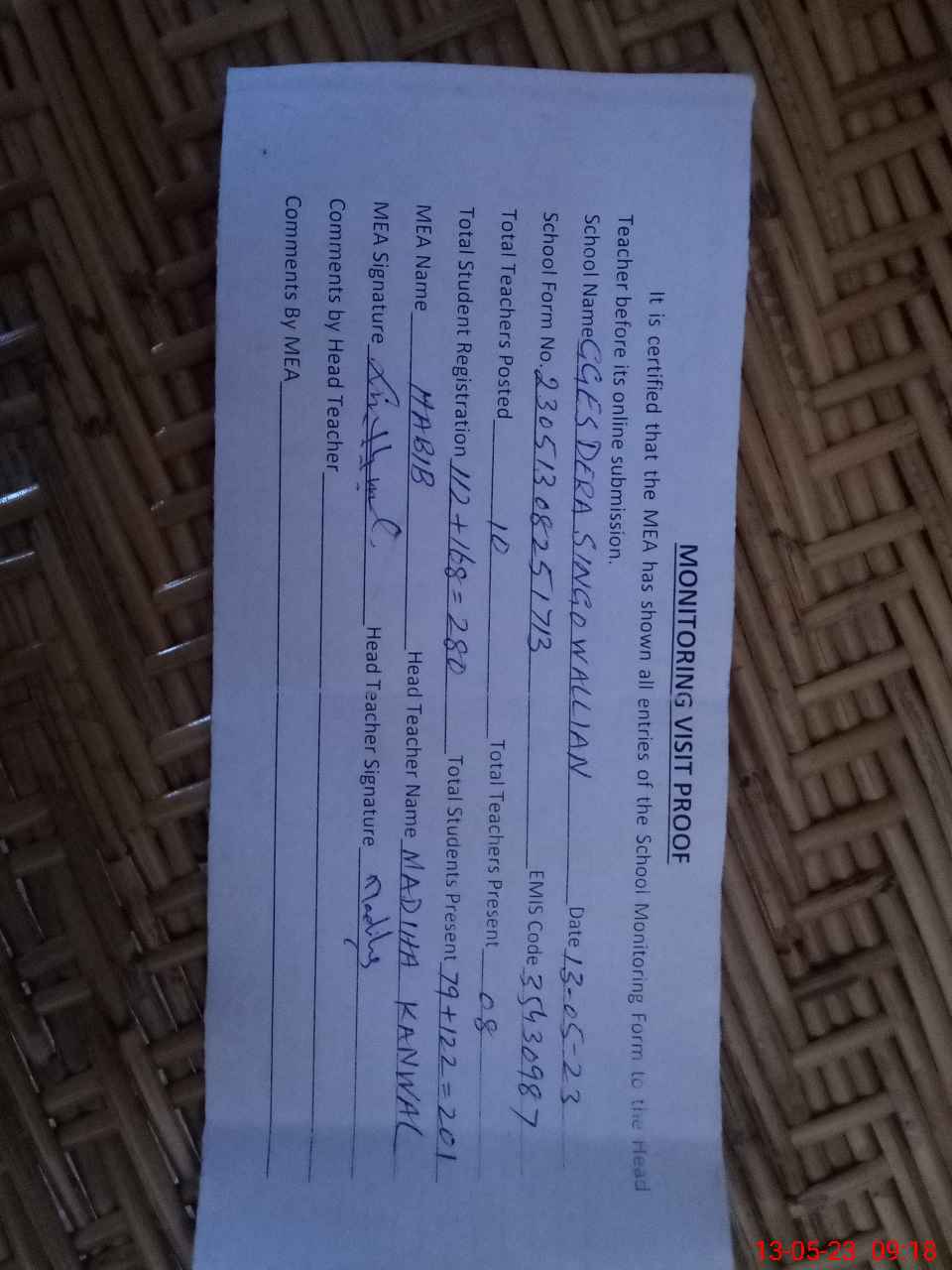 | EMIS Code: 35430987 | Name of School: GGES DERA SINGOWALLIAN | |||