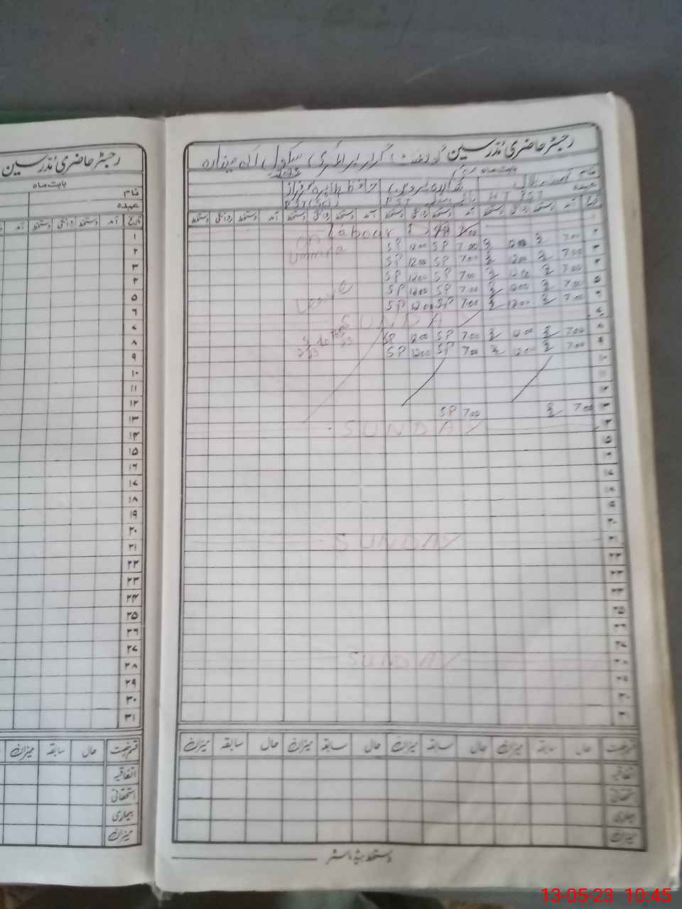 | CNIC | Full Name | Designation | R/C | Absence During Last Calender Month |