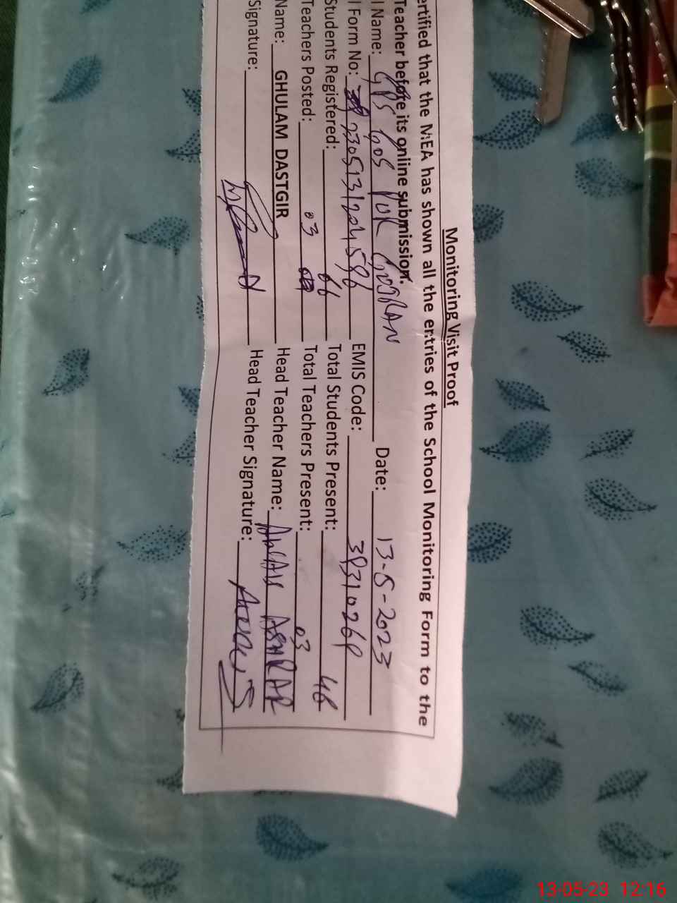 | EMIS Code: 39310269 | Name of School: GPS GHOUS PUR GUJJRAN (GHATTAY PHAKNI) | |||