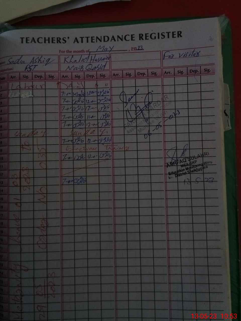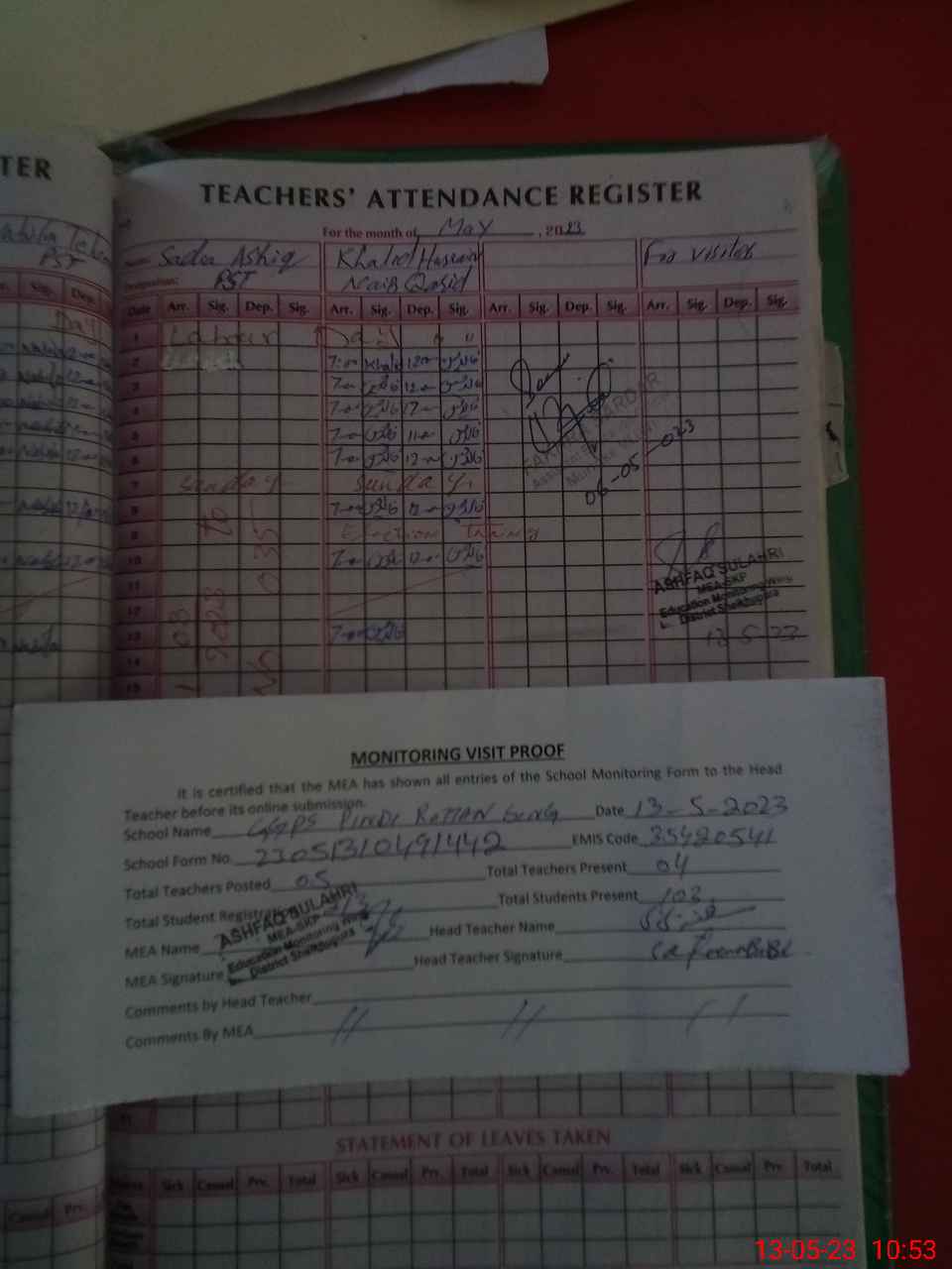 | Attendance Register | Head Teacher | MEA with School | Visit Proof |