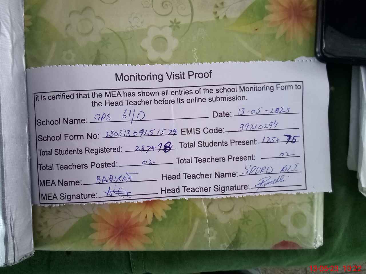 | EMIS Code: 39210294 | Name of School: GPS 61/D | |||