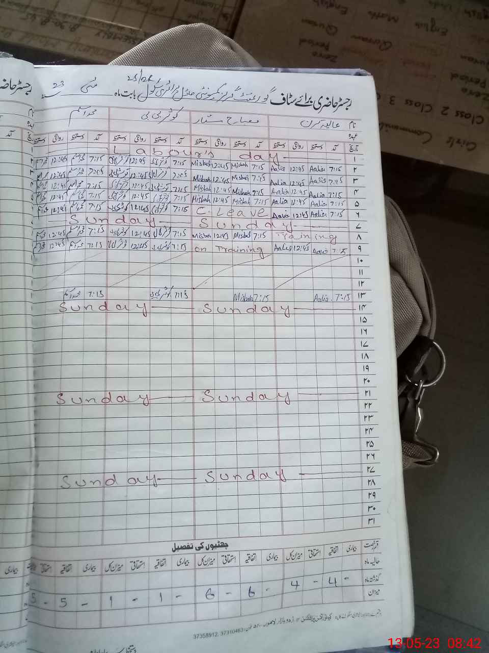 | CNIC | Full Name | Designation | R/C | Absence During Last Calender Month |