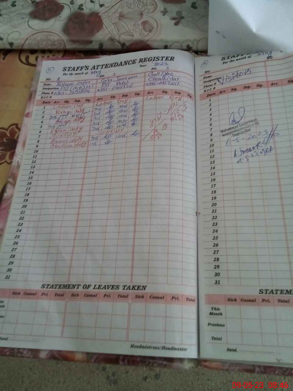 | Name: Ta**** Za**** Designation: (School Headmaster's/Headmistress's) ESE Sc Phone/Cell Number: 03**** |