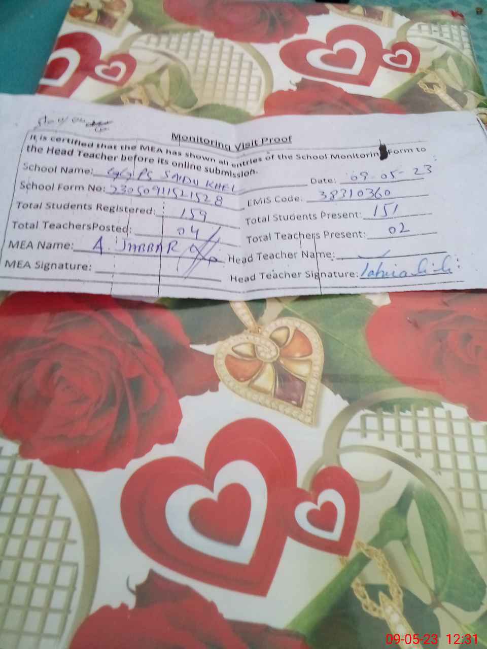 | Attendance Register | Head Teacher | MEA with School | Visit Proof |