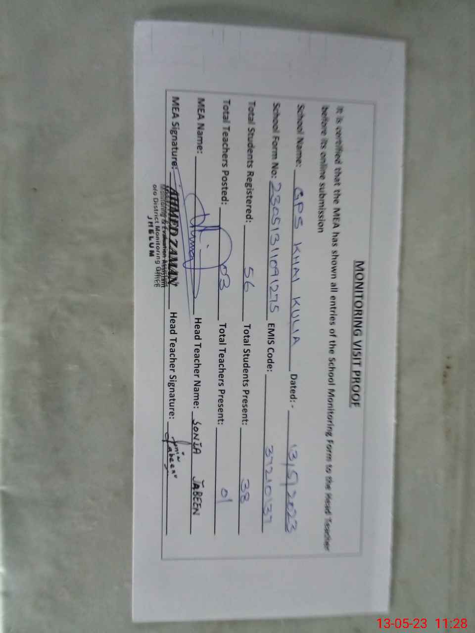 | EMIS Code: 37210137 | Name of School: GPS KHAI KULIA | |||