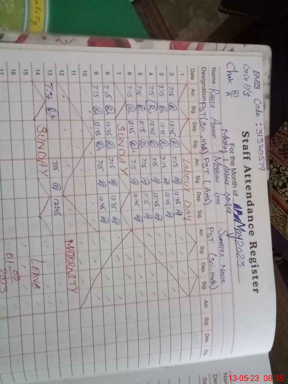 | 31**** | Su**** Na**** | PST | Regular | 30 | 0 | 0 | 30 | 0 | 0 | 0 | 0 | 0 | Maternity |