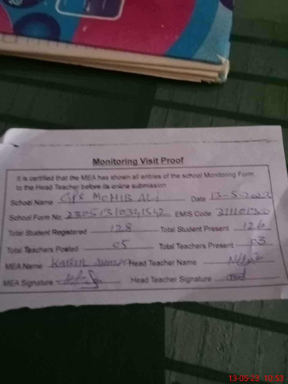 | EMIS Code: 31110130 | Name of School: GPS MOHIB ALI | |||