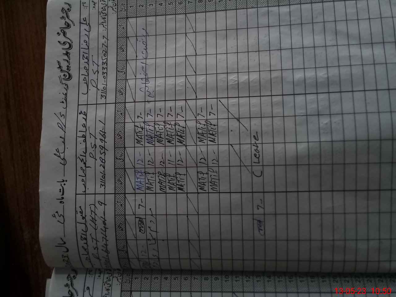 | Name: MAt**** An**** Designation: (School Headmaster's/Headmistress's) PST Phone/Cell Number: 03**** |
