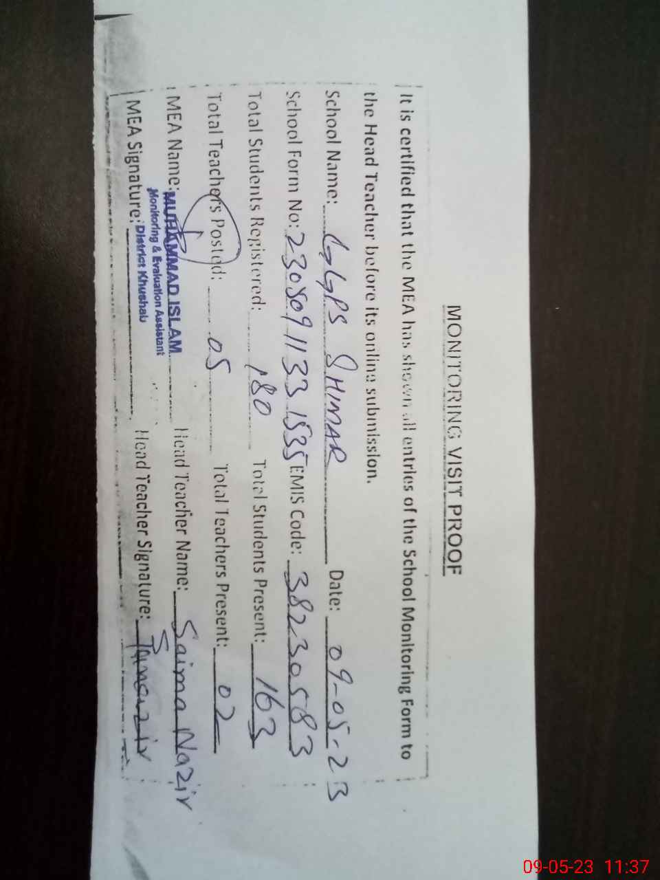 | EMIS Code: 38230583 | Name of School: GGPS SHIMAR | |||