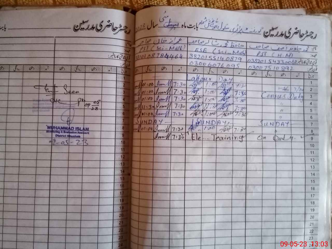 | Name: Mu**** Ja**** As**** Designation: (School Headmaster's/Headmistress's) PST Phone/Cell Number: 03**** |