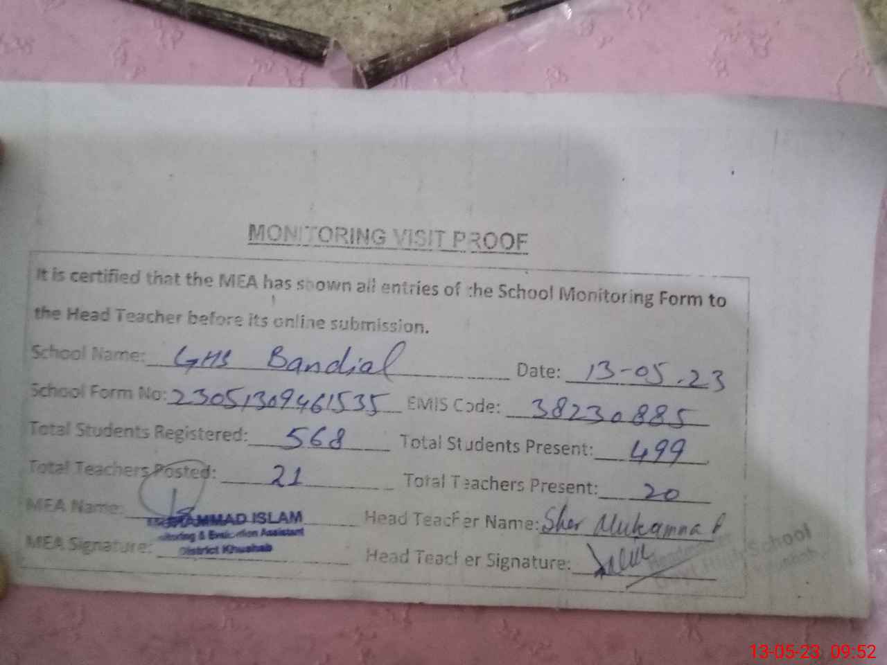 | EMIS Code: 38230885 | Name of School: GHS BANDIAL | |||