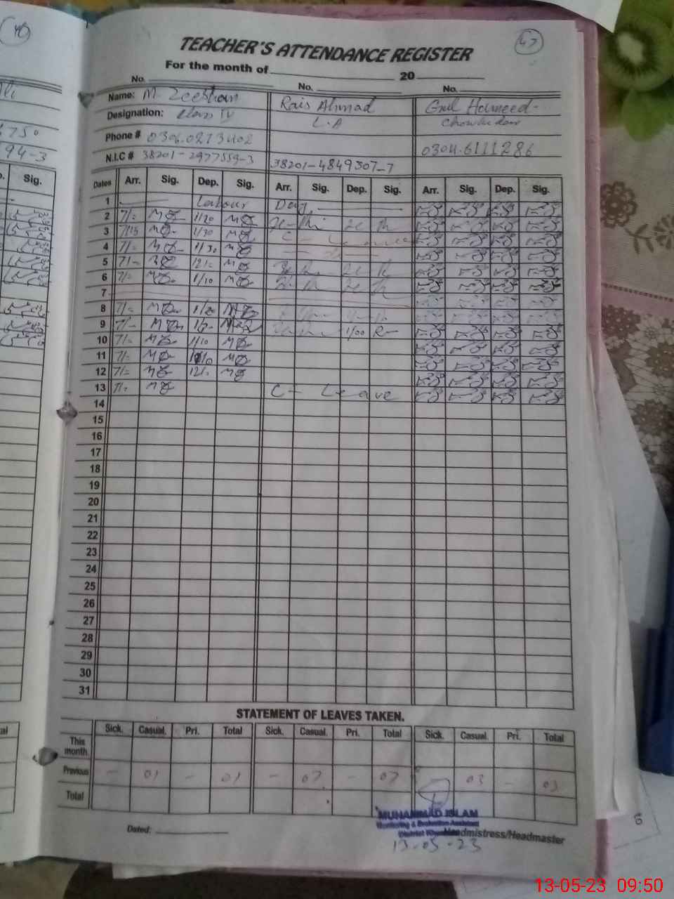 | 38**** | Mu**** Ak**** | Regular | 0 | 0 | 0 | 0 | 0 | 0 | 0 | 0 | 0 | Exam Duty | |