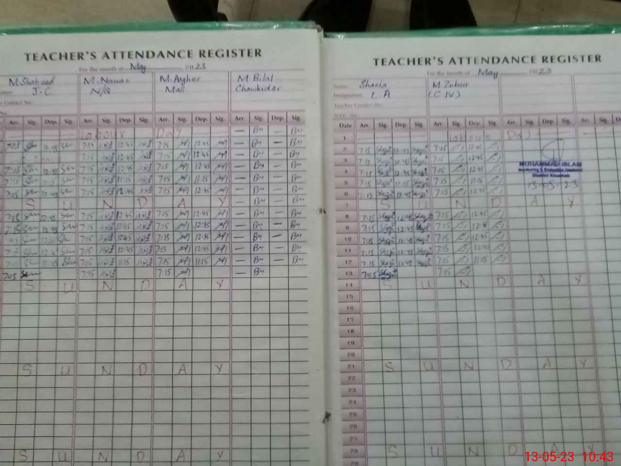 | CNIC | Full Name | Designation | R/C | Absence During Last Calender Month |