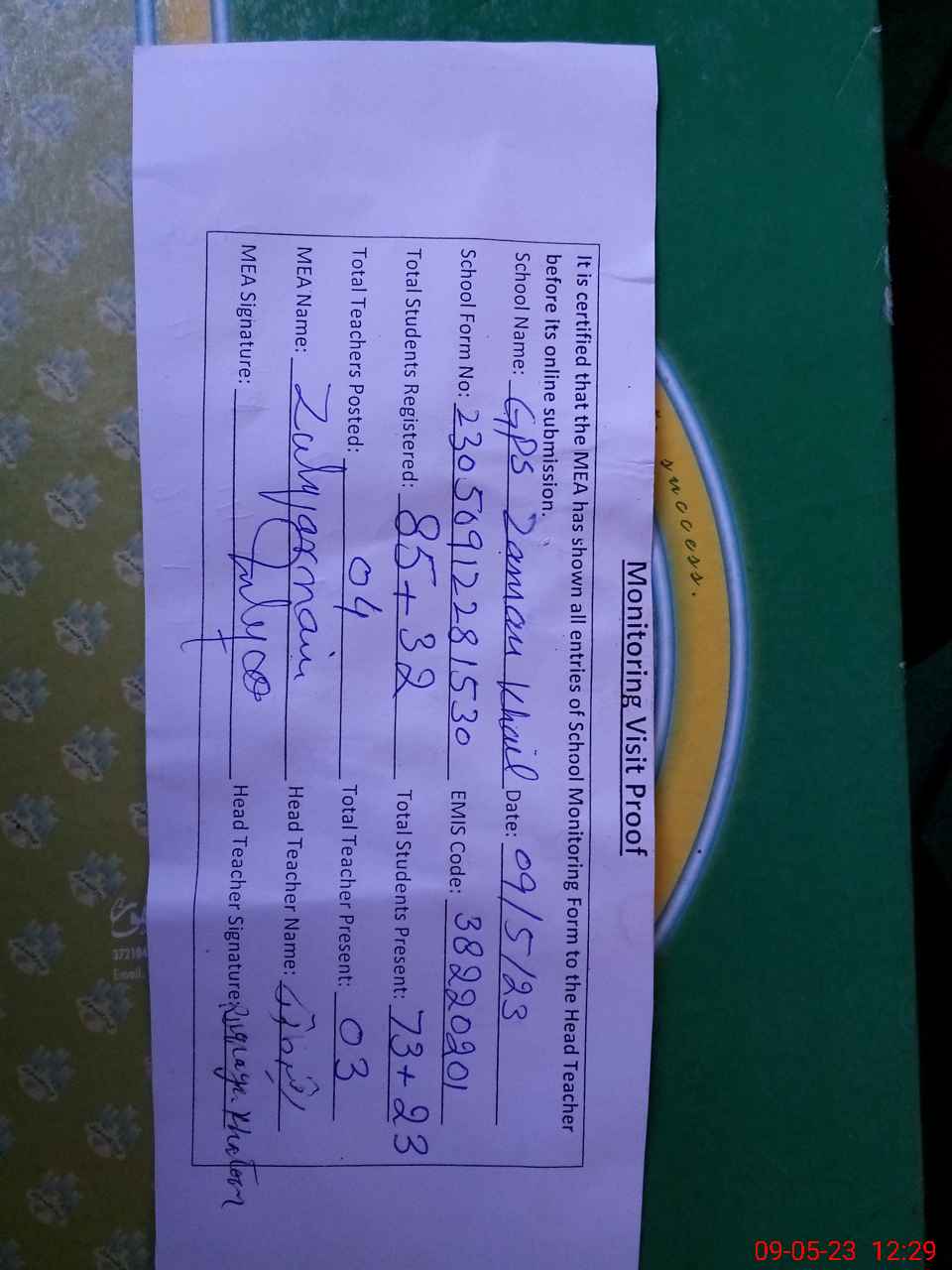 | EMIS Code: 38220201 | Name of School: GGPS ZAMAN KHAIL | |||