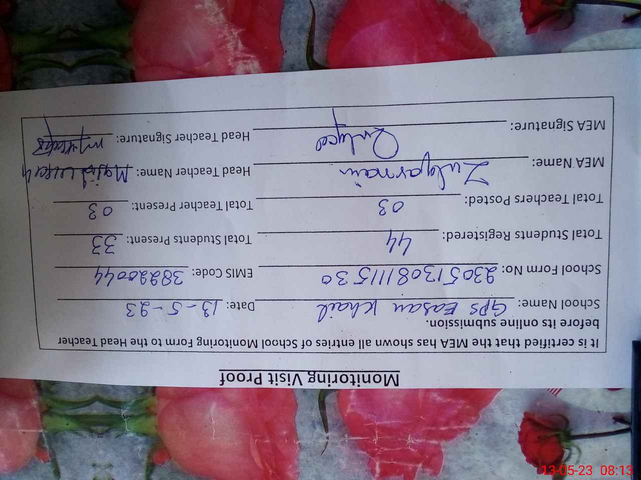 | EMIS Code: 38220044 | Name of School: GPS EASAN KHAIL | |||