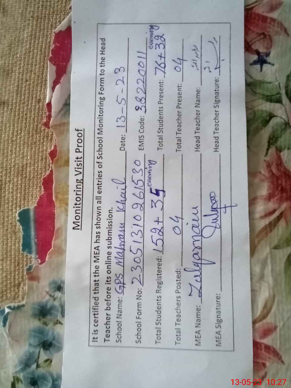 | EMIS Code: 38220011 | Name of School: GPS MAHRAM KHAIL | |||