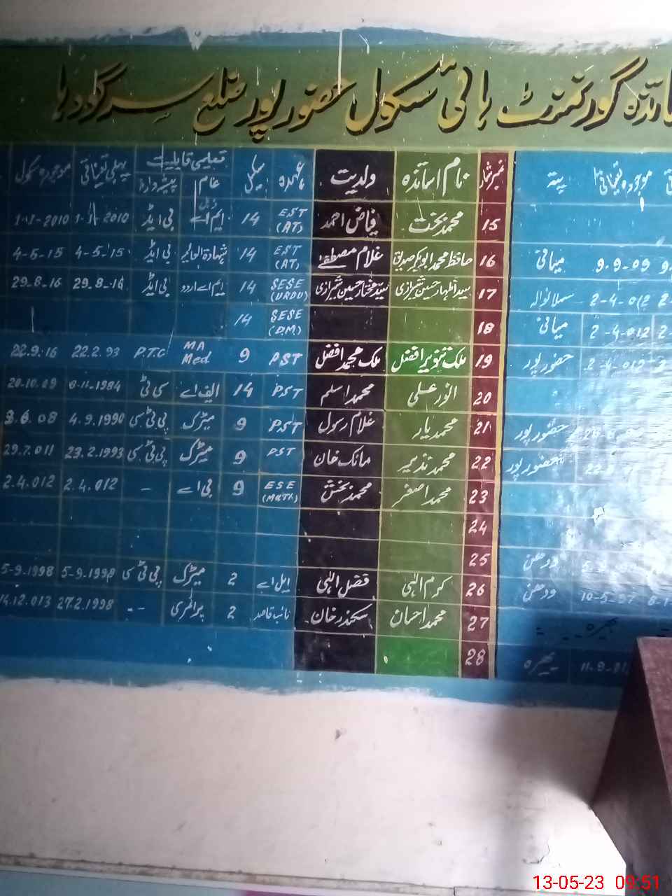 | EMIS Code: 38470026 | Name of School: GHS HAZOOR PUR | |||