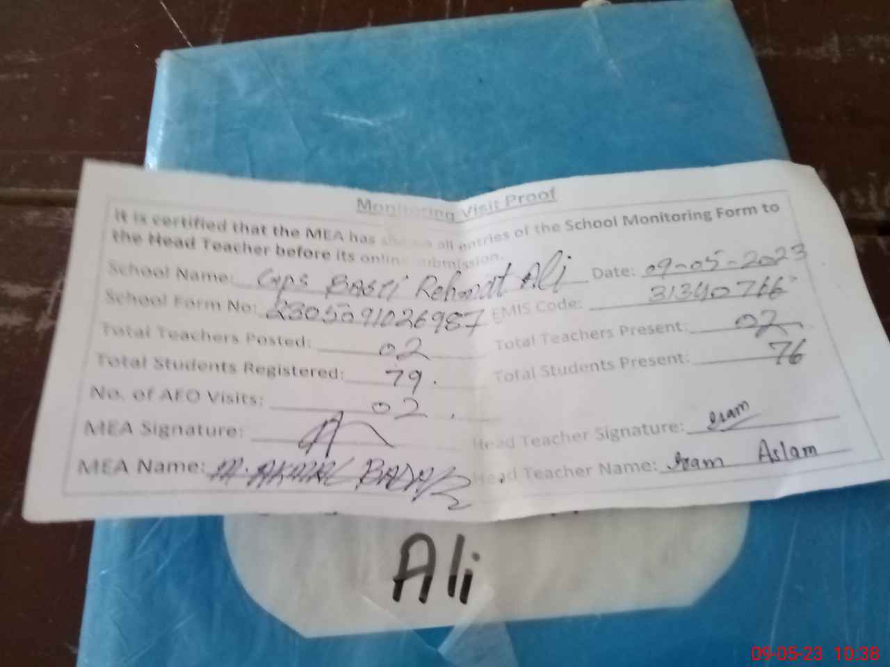 | EMIS Code: 31340766 | Name of School: GPS BASTI RAHMAT ALI | |||