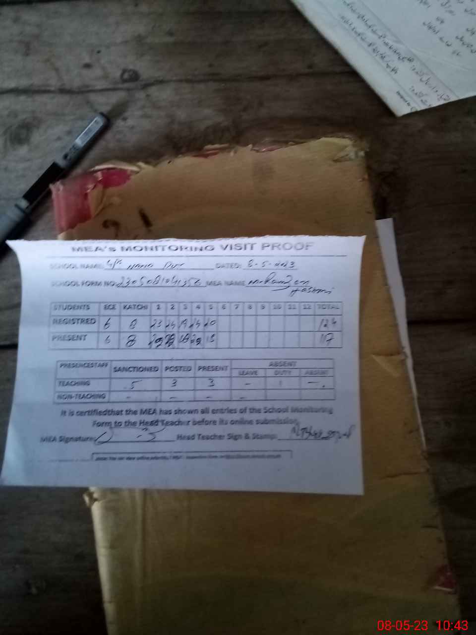 | Attendance Register | Head Teacher | MEA with School | Visit Proof |