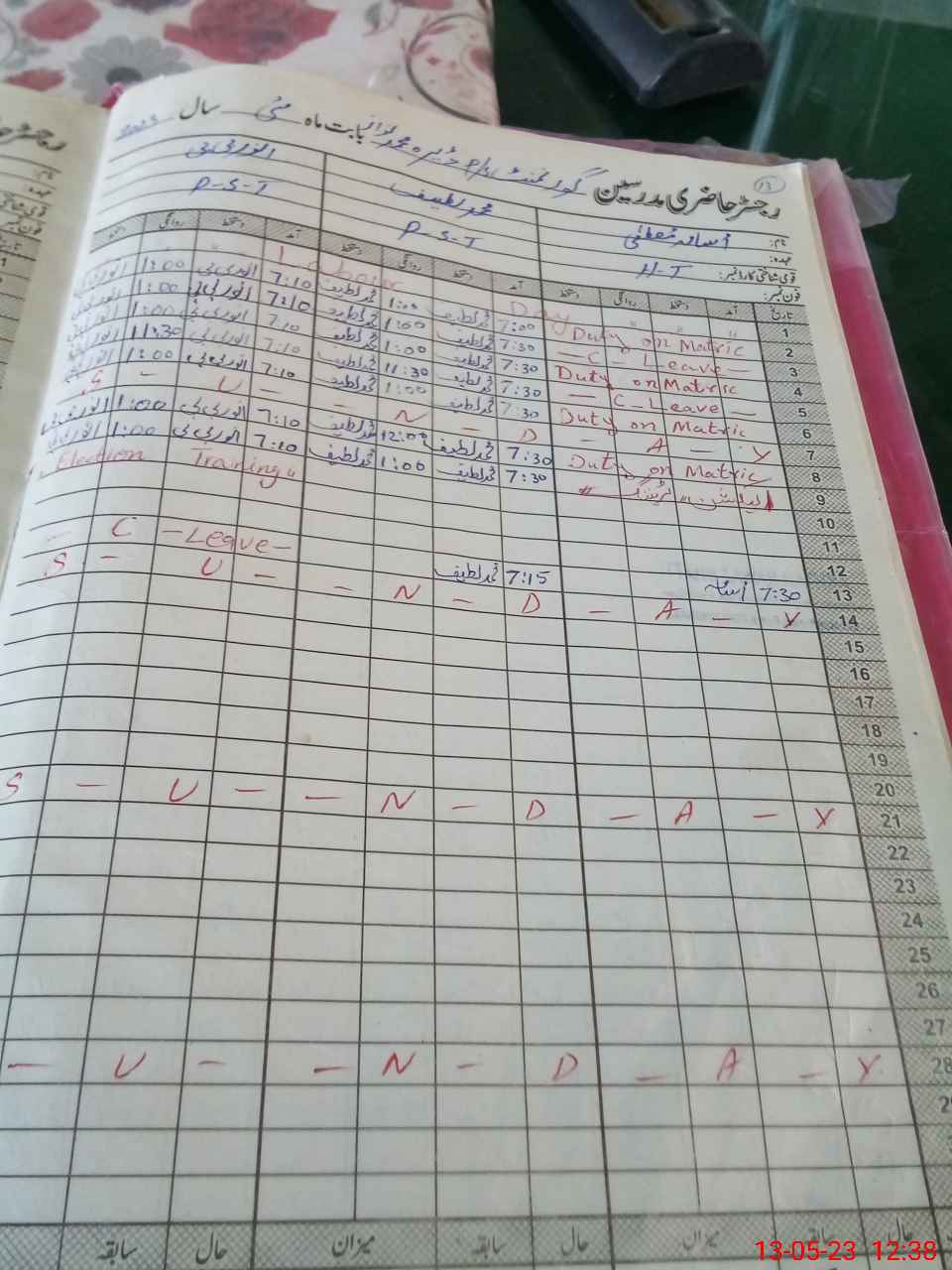 | Leave | Duty | Absent | Maternity | Medical | Ex- Pak |