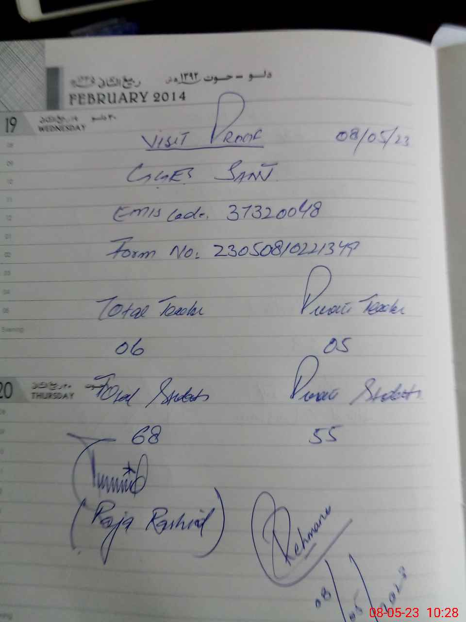 | Certified that this School was Inspected by the Undersigned MEA/DMO Today and the Information Stated Above is as Per Record. | |||||