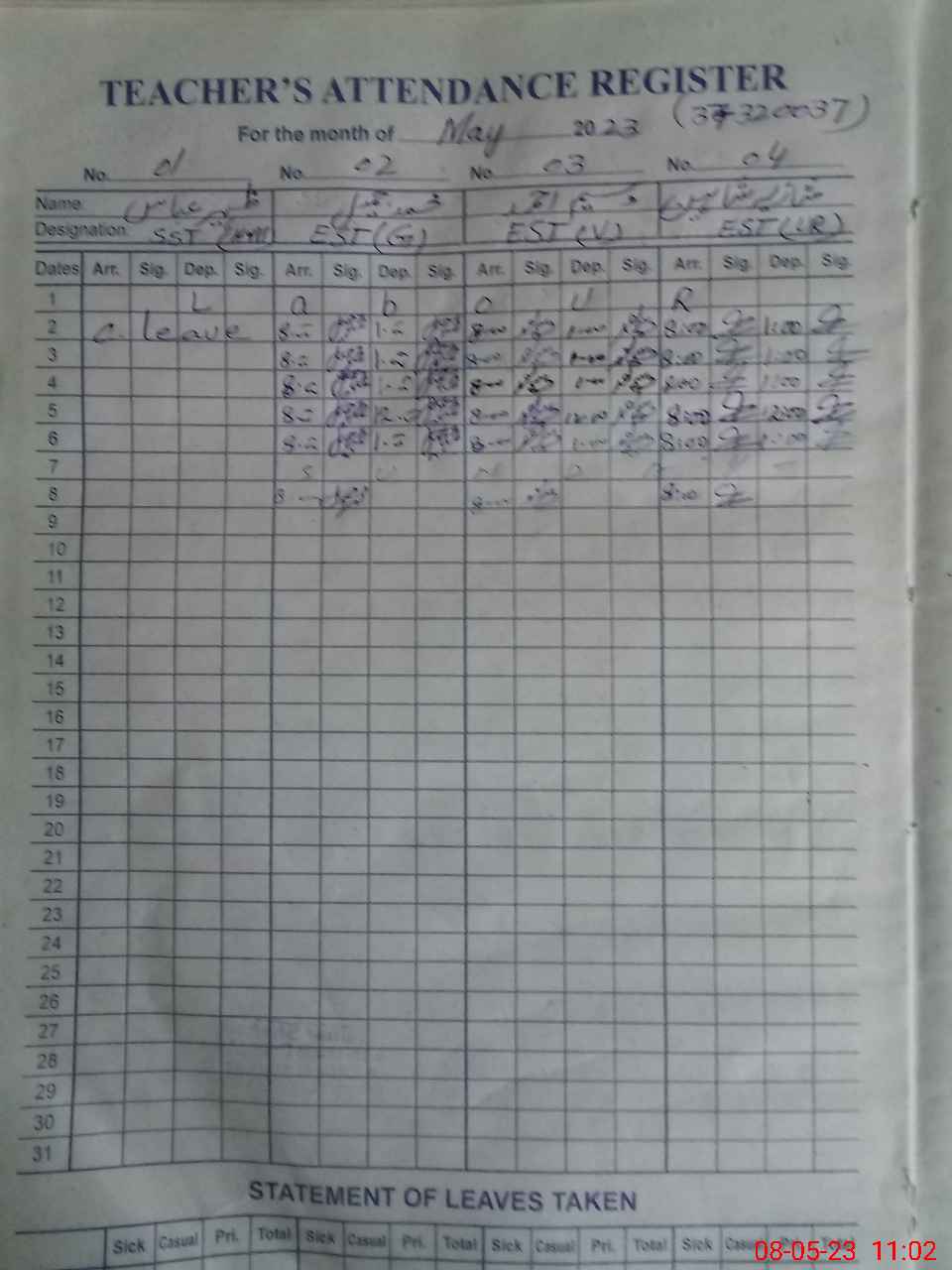 | 36**** | Za**** Ab**** | SST | Regular | 0 | 0 | 0 | 0 | 0 | 0 | 0 | 0 | 0 | Absent (Un-Authorized) |
