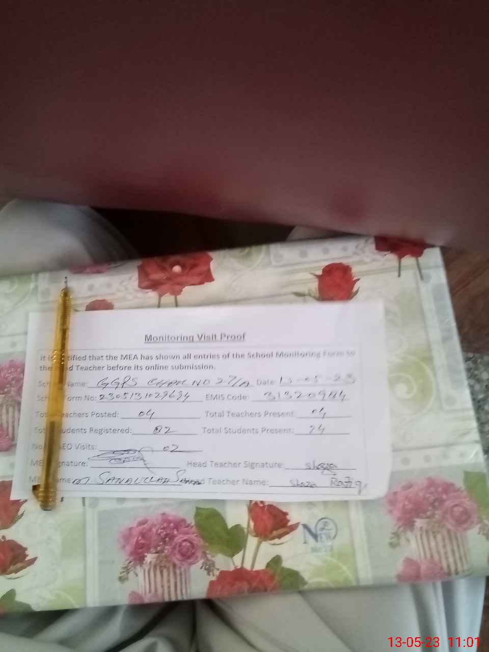 | Attendance Register | Head Teacher | MEA with School | Visit Proof |