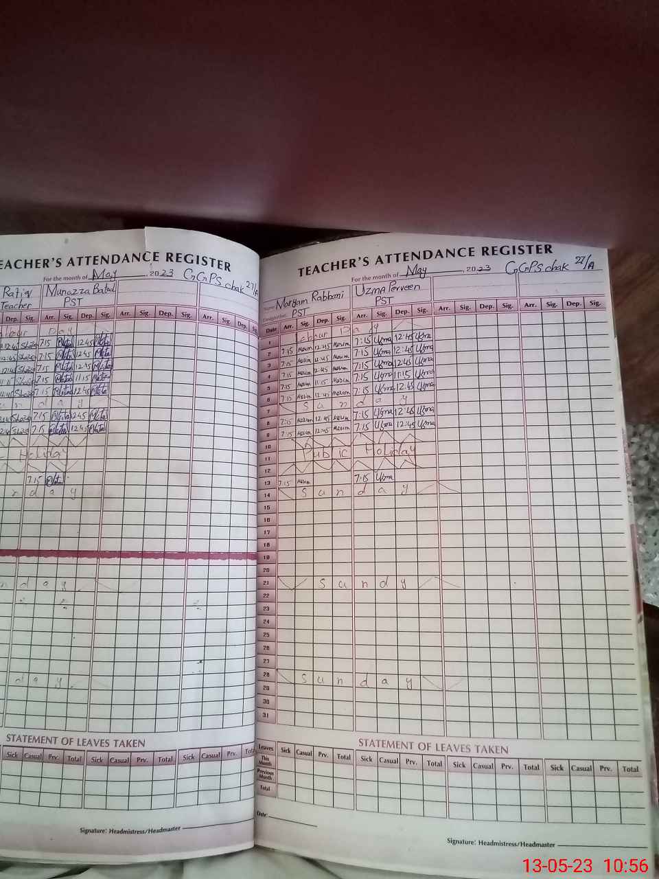 | Name: Ma**** Ra**** Designation: (School Headmaster's/Headmistress's) PST Phone/Cell Number: 03**** |