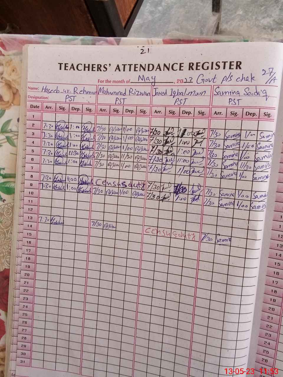 | Name: MU**** RI**** Designation: (School Headmaster's/Headmistress's) PST Phone/Cell Number: 03**** |