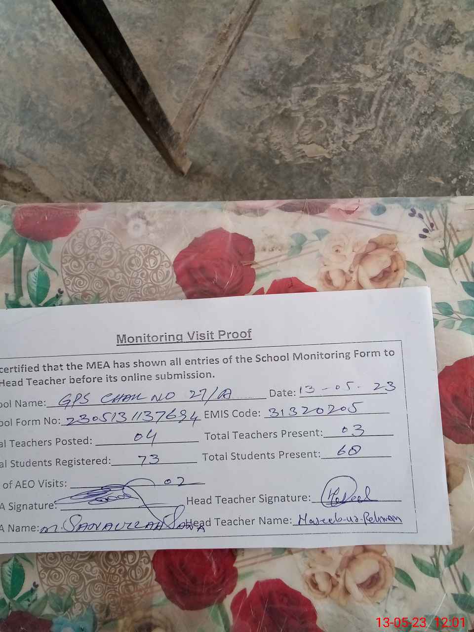 | EMIS Code: 31320205 | Name of School: GPS CHAK 27/A | |||