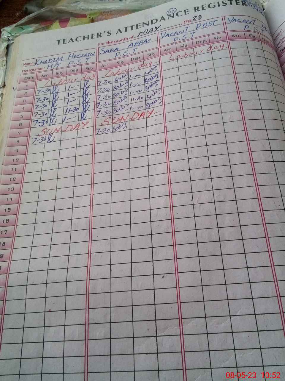 | Name: Sa**** Ab**** Designation: (School Headmaster's/Headmistress's) PST Phone/Cell Number: 03**** |